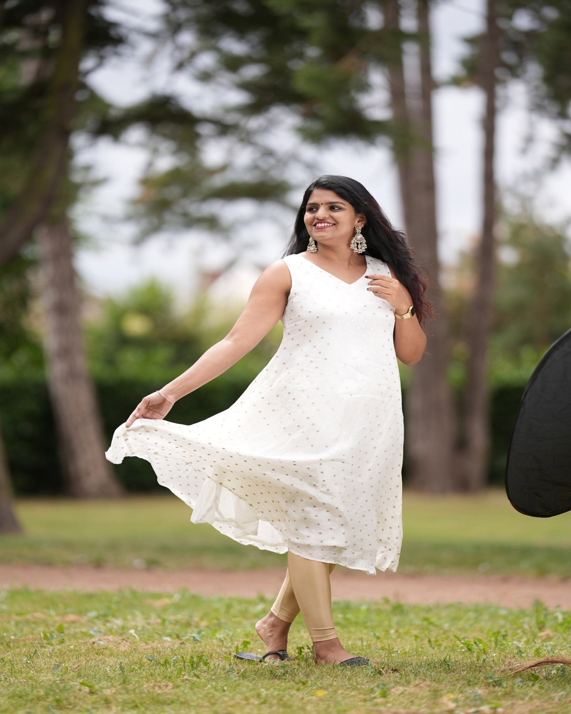 Crafted from soft ivory fabric with refined golden motifs, the Gold Petals Dress seamlessly blends traditional charm with contemporary elegance. Its sleeveless design makes it an excellent choice for brunches, festive gatherings, or understated stylish occasions. To maintain its delicate texture and intricate details, dry cleaning is recommended. Additionally, the dress offers an option for customization through subtle dyeing in light shades, allowing a personalized touch while preserving its graceful appeal.